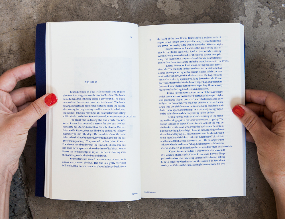 Ephemera: Next Words Anthology 2015. Book and cover art direction and book design for CalArts MFA writing program. The cover was screenprinted and interior book was printed on a risograph printer. A collaboration with Colomba Cruz.